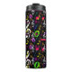 Símbolos e notas musicais coloridos com música, notas, clf, triplo, quaver,baixo,crochê sobre fundo negro