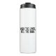 Um tumbler térmico com o slogan motivador "Push The Limits, Feel The Burn" em uma simples tipografia de texto preto.