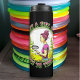 Tumbler térmico de golfe em disco para mulheres. Só uma garota que gosta de fazer aspas. Bonito senhora com pão bagunçado jogando um golfe de disco na floresta.