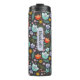 Personalized thermal tumbler with the spring colorful flowers pattern on dark background.