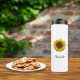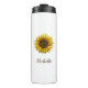 Boho botanical Yellow Sunflower bloom thermal tumbler, with customizable script typography. Enjoy this personalized accessory item for yourself or as a gift for someone special.