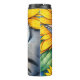 A tumbler with a sweet napping kitty cat by a sunflower watercolor style ai illustration.