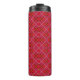 Tall tumbler with a black lid, featuring a vibrant pink, red, and orange argyle pattern. The design adds a stylish, eye-catching appeal.