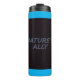 A design térmica mostra o texto "Aliado da Natureza" em um estilo futurista multicolorido. As cores são vibrantes e contrastantes, criando um efeito visualmente marcante. A design tem uma estética moderna, elegante, com linhas limpas e bordas afiadas. O sentimento geral é de energia e inovação.