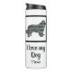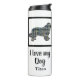 Terra Nova / Silhueta de cão novo amarelo, azul e preto Linhas de Grade com padrão elegante de abstrato. Altere ‘ Amo meu cachorro ’ / ‘Nome’ com qualquer texto que você quiser em ambos os lados. Este tumbler térmico certamente coloca um sorriso em qualquer rosto de amante de cachorro. Além disso, é ecológico, para que ela possa guardar por anos.