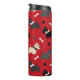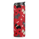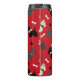 Cães escoceses, cinzas e cães escoceses que vestem arcos, com pegadas e ossos de cães em fundo vermelho.