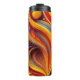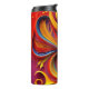 A colorful, bold, and vibrant abstract design covers this unique Thermal Tumbler.