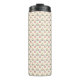 Tall travel mug with a black lid, cream background, and vintage red and green floral pattern. Shown front and right views, conveys a retro feel.