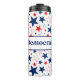 Este tumbler térmico é mostrado com um texto impressão e Democrata de estrelas patriótico. personalize este item ou comprar como está.