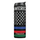 This is a powerful patriotic graphic honoring various public safety and service professions, collectively titled "AMERICA'S HEROES". The design is styled after a distressed American flag, but the traditional stripes are replaced by various "Thin Lines" representing different occupations: Corrections (gray), Dispatch (yellow/gold), Nurse (white/red), EMS (blue/white), Police (blue), Firefighter (red), and Military (green). The name placeholder "Theodore" appears on the Firefighter stripe, making the design a tribute to multiple first responder fields.