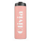 Tumbler térmico personalizado simples e minimalista em pêssego com seu nome em um texto retro divertido. Totalmente editável, incluindo cor da base do tumbler, texto, cor, tamanho e estilo. Selecione "Personalize este modelo" e faça as alterações desejadas, ou você pode encomendar este tumbler "como está". O nome mostrado é Olivia, em texto retro branco em um tumbler pêssego com tampa. Da 369MyName.