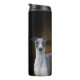 Personalize este tumbler térmico que caracteriza um retrato bonito de Whippet e faça-lhe seu. Fotografia pelo fotógrafo do prêmio e pelo desenhista animais de vencimento Diana Andersen.