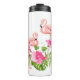 O tumbler térmico é mostrado numa cor sólida de branco com um impressão de flamingos tropicais. Personalize este item ou comprar como está.