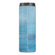 Tumbles térmicos apresentando um design de oceano azul sereno, onde a luz do sol cria reflexões sombrias sobre a água. O mar parece calmo, com diferentes tons de azul, desde a turquesa clara até o mais profundo azure, capturando a beleza pacífica do oceano sob a luz do sol brilhante. Os raios solares dançam sobre a superfície, acrescentando um efeito cintilante, quase mágico, à cena, aumentando a sensação de um dia quente e ensolarado perto do mar.
