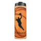 Tumbler Térmico de Design de basquete com cores e texto de fundo personalizáveis.