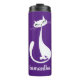 Tumbler Térmico de Design de Gato Branco com cor de fundo e texto personalizáveis.