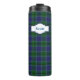 Tumbler Térmico personalizado bonito feito no padrão clássico azul, preto escocês, clã Scott tartan xadrez. Uma placa decorativa de texto branco, tem texto azul personalizado pronto para personalizar. ideia de presente de excelente.