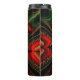 Garrafa Térmica Vermelho, Dourado e Verde em Abstrato