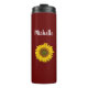 Tumbler térmico Floral Yellow Sunflower personalizado com tipografia elegante sobre fundo vermelho. Com letras brancas, você pode personalizar com seu próprio nome. Um item na moda que é excelente para quando você está em movimento.