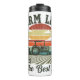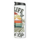 Esta é uma design gráfica rústica com um tema de fazenda. A imagem central apresenta um trator clássico, um celeiro e um moinho de vento. A cena é colocada em um campo arado contra um pôr do sol vibrante com raios de sol em várias cores. As frases "LIFE FAZENDA" e "Is the Best Life" são exibidas de forma destacada, acima e abaixo da cena, em caracteres em negrito e meteoritos. A design é fechada no fundo por uma cerca com feixes decorativos de trigo.