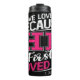 This powerful design features "WE LOVE BECAUSE HE First LOVED US 1 John 4:19." "WE LOVE BECAUSE" is in bold white, while "HE" is highlighted in vibrant pink. "First LOVED US" flows in white script with small hearts and a cross, beautifully conveying the scripture's message of divine love as the source of our own.