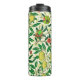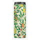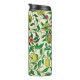 Tumbler em um padrão de limões, romãs e pêssegos, com flores, em William Morris Art Nouveau - fruta em amarelo-limão e laranja-coral, com folhas verdes, contra fundo padronizado, amarelo e branco