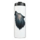 Este design selvagem ao ar livre é um lobo uivante com árvores e um dentro da lua dele.