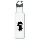 Ninja feliz de desenho animado vestido de preto com braço levantado em ondas. A espada tradicional japonesa katana pode ser vista em cima do ombro.