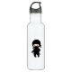 Ninja bonitinha vestida de preto está segurando uma estrela lançadora. A espada tradicional japonesa katana pode ser vista em cima do ombro.