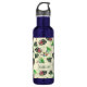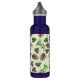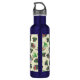Colorful watercolor paintings of parrots and foliage in whimsical pattern on tropical personalized water bottle.