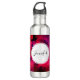 Garrafas de água com fundo de abstrato legal. Os derrames vermelhos e roxos criam um design vibrante moderno e ousado. Um círculo por cima com um dentro de nome personalizado.