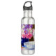Garrafa de água com um belo gatinho branco vestindo uma fita roxa! Este gatinho fluffy se posiciona próximo a uma tigela azul e um vaso de flores rosa, roxas e brancas. Um presente maravilhoso para amantes de gatos e entusiastas de arte vitorianos!