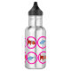 10 pink circles in two rows. inside circles are either a blue whale , or a red dog.
