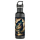 Imagem dentro de uma fotografia. Um lobo uivando na lua com montanhas e fundo florestal.