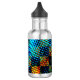 Garrafa Xadrez azul, arranhão esverdeado, mancha suja verm