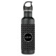 Garrafa de água xadrez preta e cinza moderna e elegante com linhas brancas.