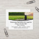 Sistemas de irrigação por gramado doméstico e sistemas de pulverização por cartão de visita, modelo de design editável. Criado com uma imagem gráfica de um pulverizador de grama em ação de perto. Apresentado em estoque de papel de cartão de visita que é maior que o tamanho padrão e oferece mais impacto visual.