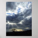 outdoor natural beauty landscape scenery - fluffy clouds with sunrays shining on to a lone tree