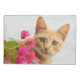 Um gatinho vermelho curioso do gato malhado está olhando-o, espreitando atrás de um bougainvilla de florescência com olhos de elevação por meio de alavanca, retrato. Esta caixa acolhedor do travesseiro é uma ideia do presente para amantes do gato e do animal de estimação. Uma foto bonito do retrato do gatinho do gengibre tomada por Katho Menden. http://www.zazzle.com/kathom_photo