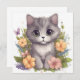 Gatinho de Cinzas bonitas com flores Kawaii Chibi