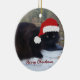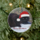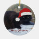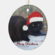 O gatinho preto bonito com o ornamento do chapéu do papai noel, de que lê: Feliz Natal. Você é bem-vindo mudar as palavras.