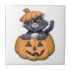 Ilustração de um gato preto que pica sua cabeça fora de uma lanterna do o do jaque.