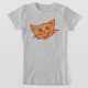 Gato gráfico/rosto de gatinho, simples e bonito, em camiseta laranja. Ideal para amantes de gato de mesa. Item desenhado à mão e design para gráficos vetoriais por Sarah Trett para www.mylittleeden.com