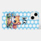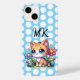 Um gatinho adorável sentado em um canteiro de flores azuis e rosas com bolinhas brancas capa de telefone personalizada.