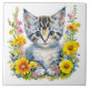 Gatinhos de aquarela em Flores Amarelas e Rosa
