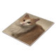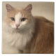 Um azulejo cerâmico com foto de um gato de cabelos brancos e de ouro.