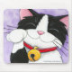 Design afortunado bonito do mousepad do gato de Maneki Neko. O gato preto e branco alegre do smoking que senta-se em uma posição beckoning associou com os gatos de Maneki Neko do japonês. Veste um colar vermelho com um sino dourado enorme. Cuteness do gatinho para amantes do gato. Faria um grande presente para a casa ou o escritório! Criado de um © original da pintura Lisa 2009 Marie Robinson