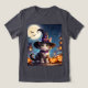 brilha com felicidade na noite de Halloween, seus olhos brilhando como luz estelar enquanto toca entre as abóboras e dança no brilho suave da lua