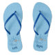 Um desenho de gato azul que toca violino. Texto personalizado em ambos os chinelos.