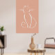 Gato branco minimalista num poster cor-de-fundo rosa.